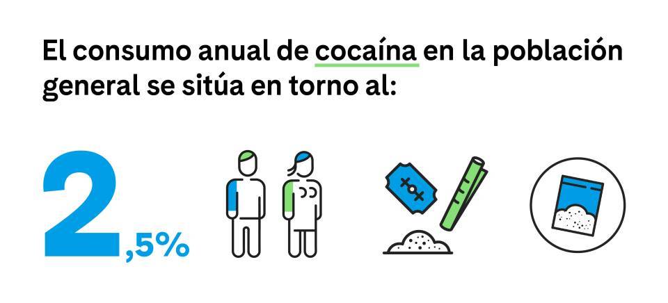 El consumo anual de cocaína en la población general se sitúa en torno al 2,5%, con una tendencia globalmente estable pero preocupante en determinados colectivos vulnerables.