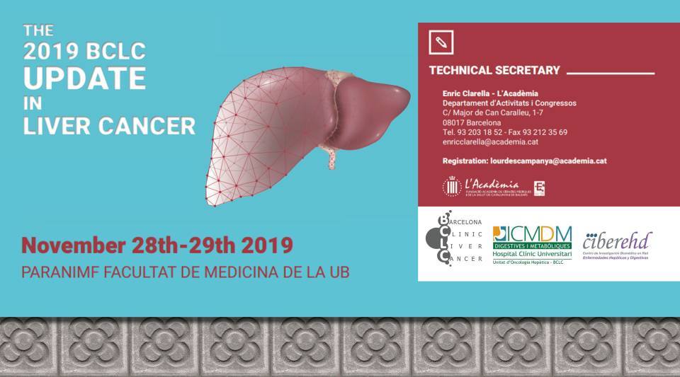 Els dies 28 i 29 es farà al Paranimf de la Facultat de Medicina de la Universitat de Barcelona la jornada d'actualització en càncer de fetge de la Unitat d'Oncologia Hepàtica (BCLC) de l'Hospital Clínic-IDIBAPS. El programa, de caràcter interactiu, està destinat a fer una actualització dels aspectes més controvertits en el càncer de fetge.