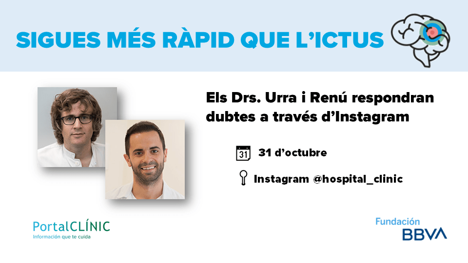 Els Drs.Urra y el Dr. Renú, neurólegs experts en el tractament de l'Ictus, respondran dubtes dels usuaris el dia 31 d'octubre a través de l'Instagram del Hospital Clínic.