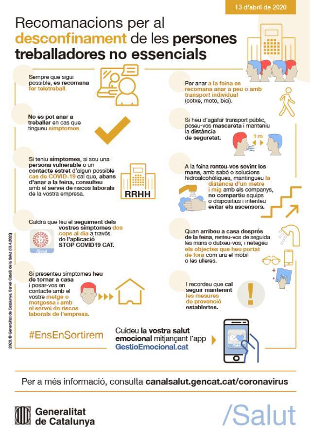 Un cop finalitzat el procés de desconfinament progressiu, la represa de la normalitat obliga la ciutadania a adoptar mesures de prevenció per prevenir els riscos de contagi i possibles rebrots, malgrat que la contenció de la pandèmia evolucioni favorablement.