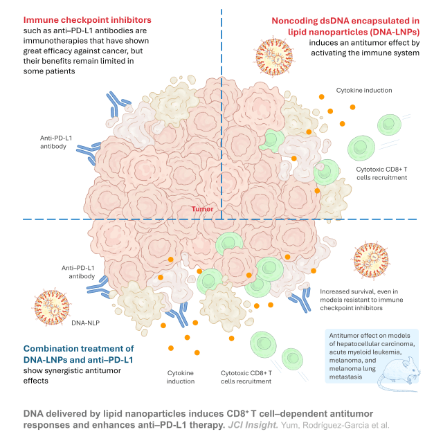 DNA delivered by lipid nanoparticles induces CD8+ T cell–dependent antitumor responses and enhances anti–PD-L1 therapy. Seoyun Yum et al. JCI Insights. March 23, 2026