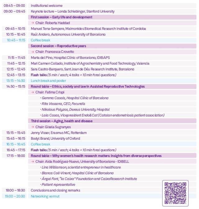 The event aims to highlight innovative projects that are transforming the way we understand and approach women's health throughout their lives, foster scientific connections between young and senior researchers, and inspire scientific vocations among new generations. Through this meeting, we also aim to advocate for greater investment and visibility in research focused on women's biology, highlighting the urgent need for equitable funding and attention in this critical area of health.