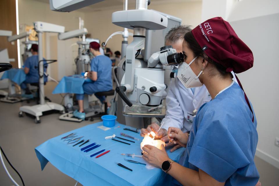 According to Dr. Alfredo Adán, Director of the Hospital Clínic Ophthalmology Institute, “This new space aims to be an innovative place for training surgical and non-surgical specialties in the field of ophthalmology from a comprehensive point of view. The CETC wants to have an impact on society promoting, along with companies in the sector, RD&I projects that address the needs that are not covered in the ophthalmology area.”