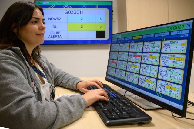 Los pacientes ingresados en las salas de hospitalización se monitorizan de manera continuada desde la plataforma ClinScreen, donde se supervisan aproximadamente 450 pacientes simultáneamente gracias a tecnología avanzada que permite integrar la información procedente de los dispositivos de control de constantes vitales.